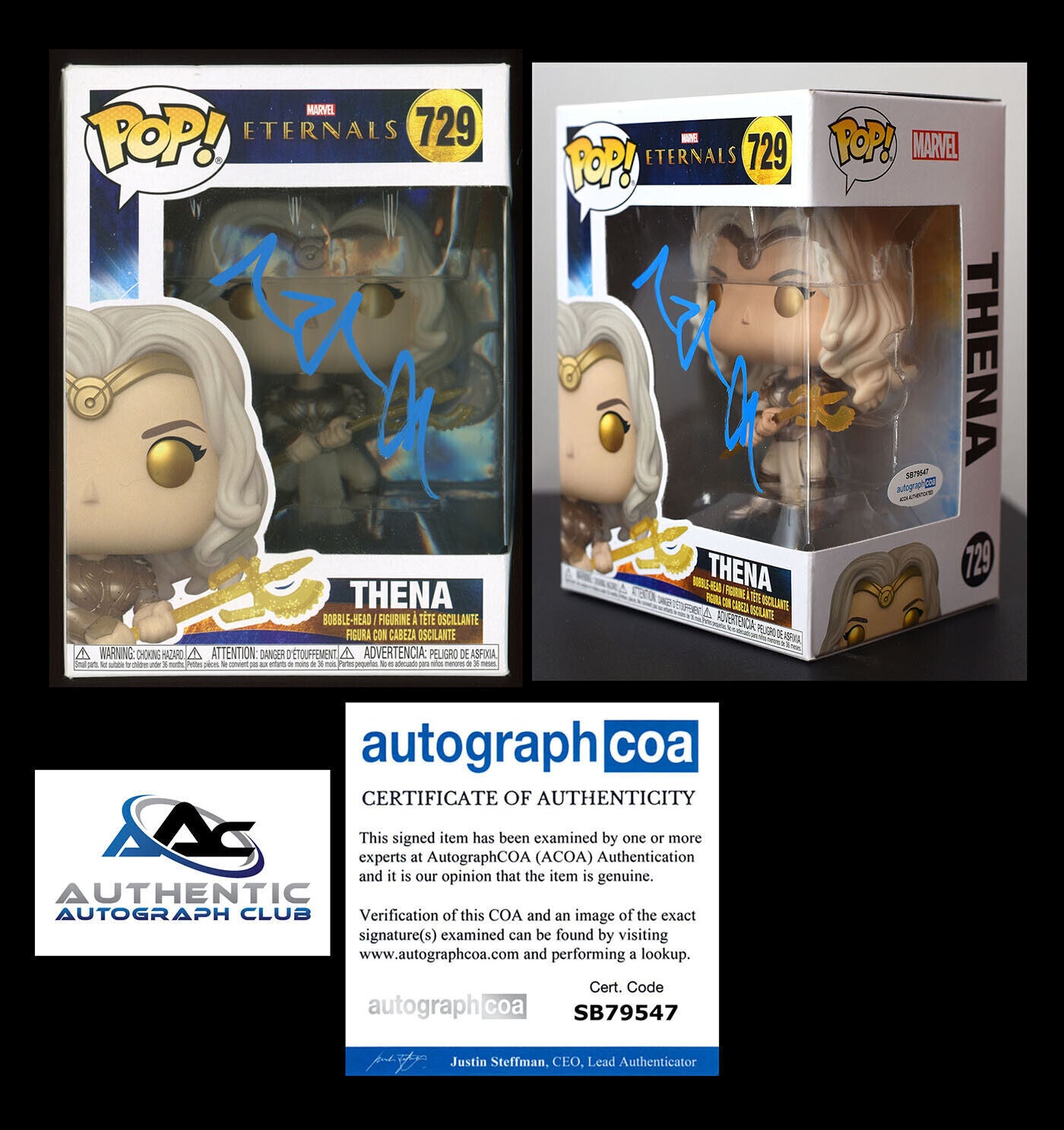 ANGELINA JOLIE AUTOGRAPH SIGNED MARVEL ETERNALS THENA FUNKO POP 729 ACOA