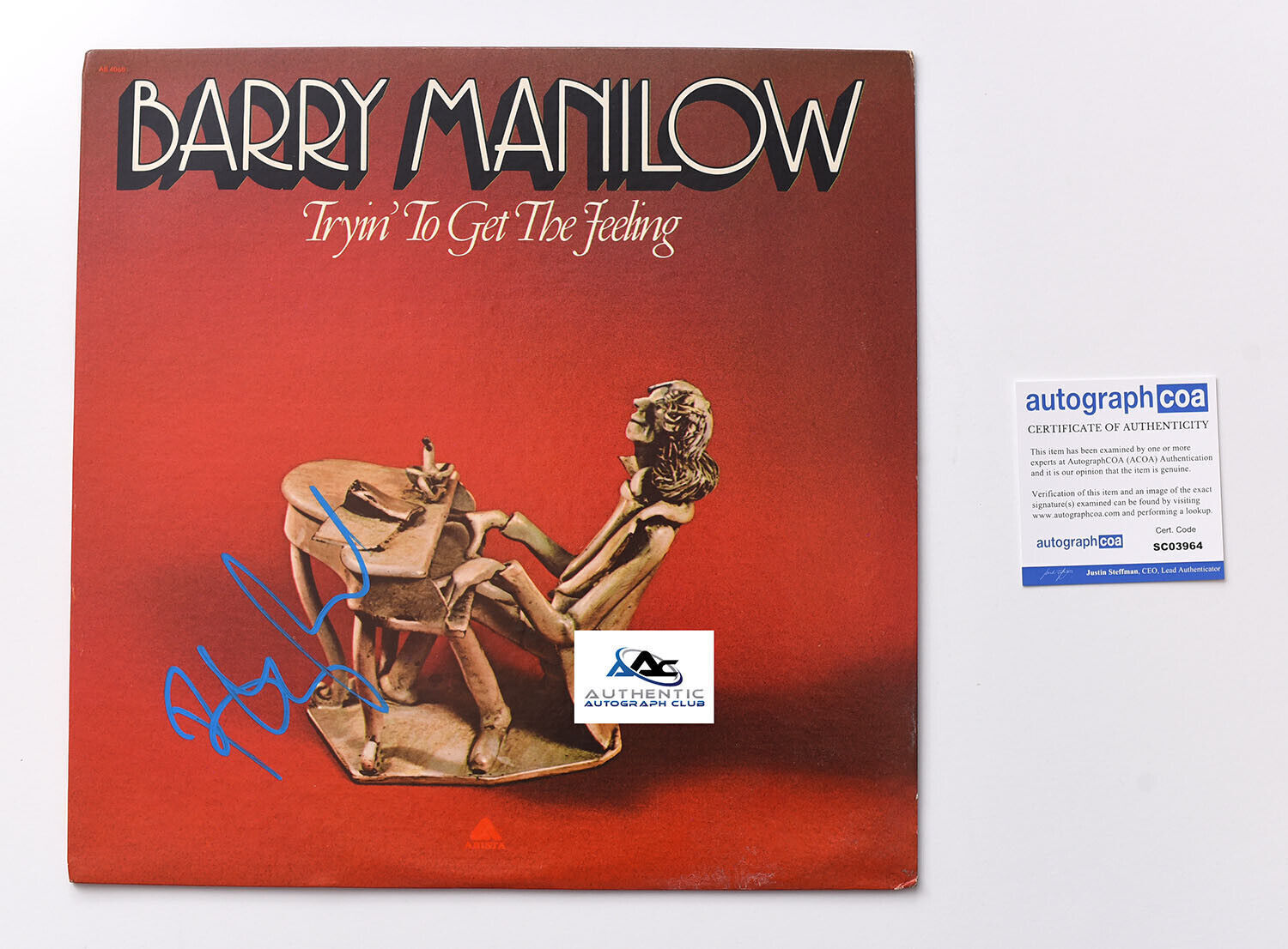 BARRY MANILOW AUTOGRAPH SIGNED TRYIN TO GET THE FEELING ALBUM VINYL RECORD ACOA