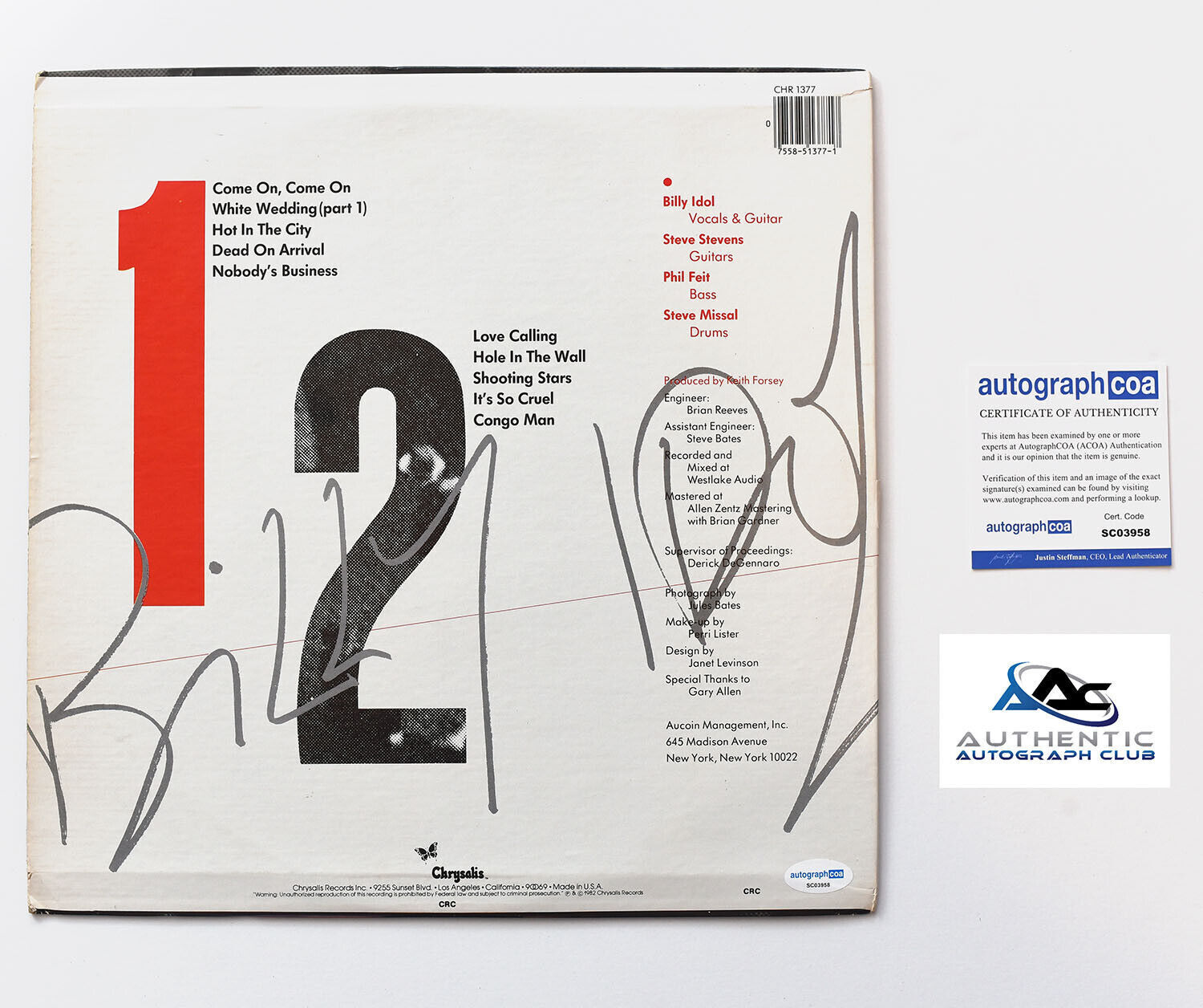 BILLY IDOL AUTOGRAPH SIGNED ALBUM VINYL LP RECORD ACOA