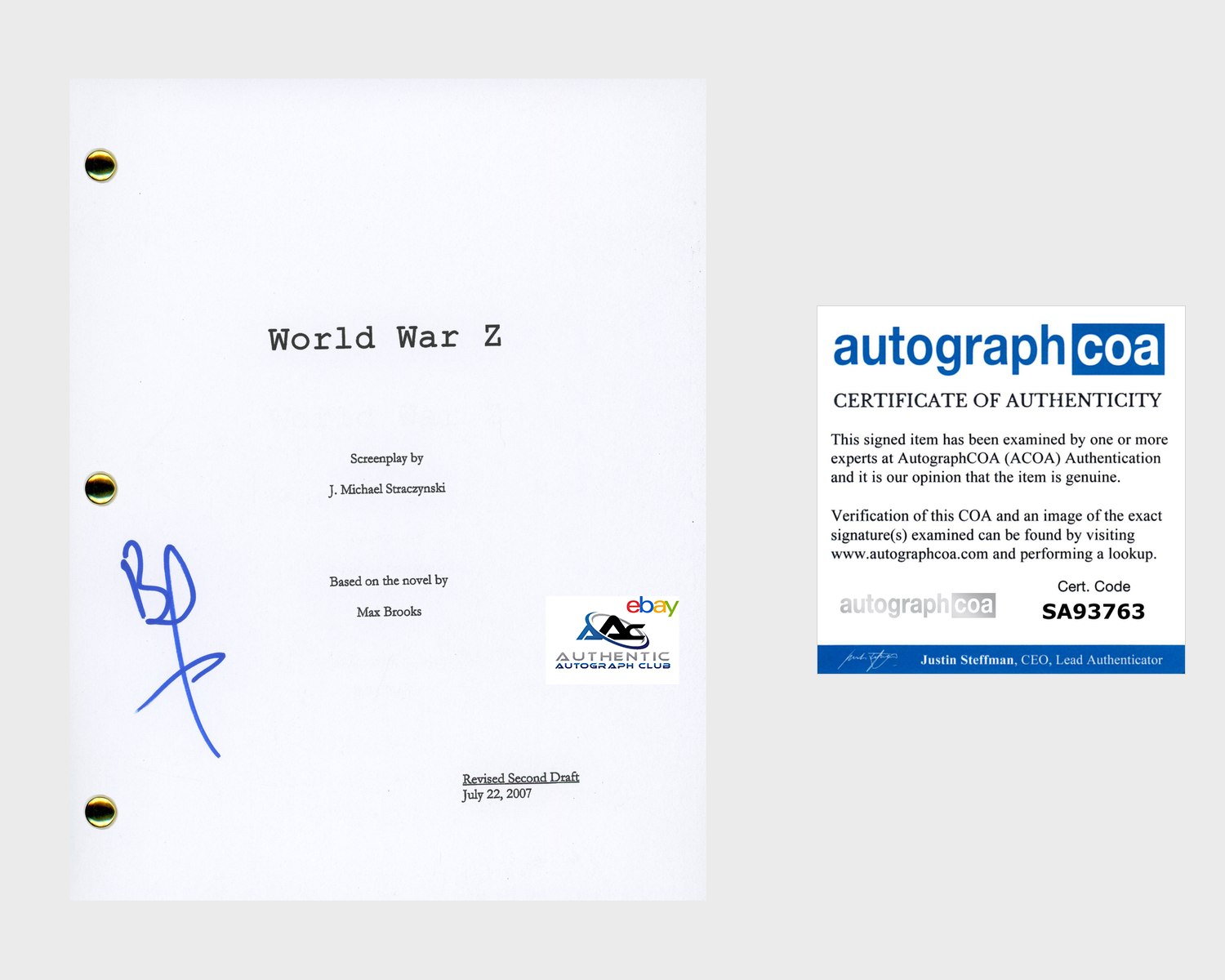BRAD PITT AUTOGRAPH SIGNED WORLD WAR Z FULL MOVIE SCRIPT ACOA COA
