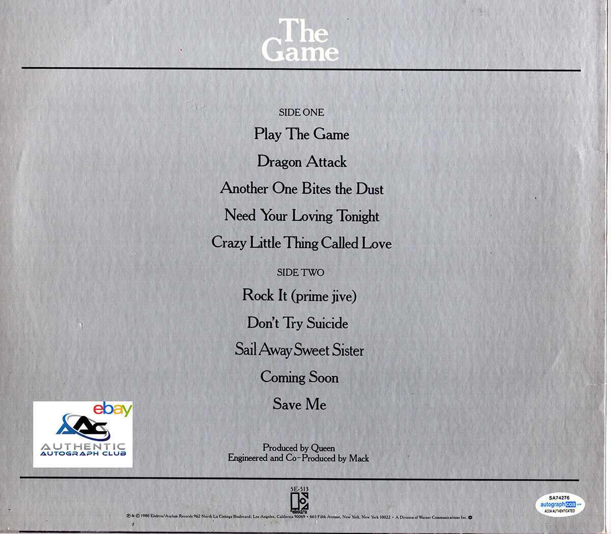 BRIAN MAY AUTOGRAPH SIGNED QUEEN THE GAME VINYL ALBUM LP ACOA