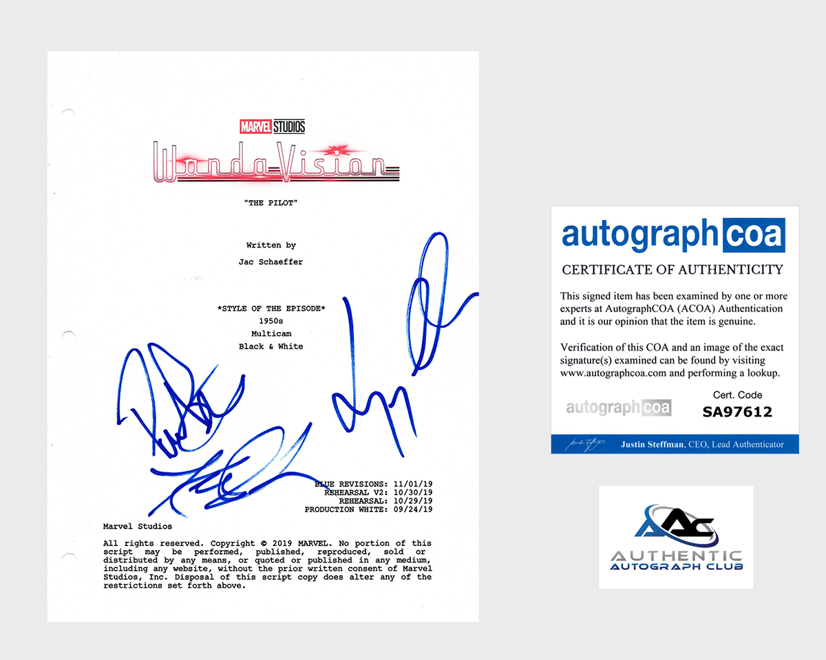 ELISABETH OLSEN. PAUL BETTANY HAHN AUTOGRAPH SIGNED WANDAVISION MARVEL SCRIPT