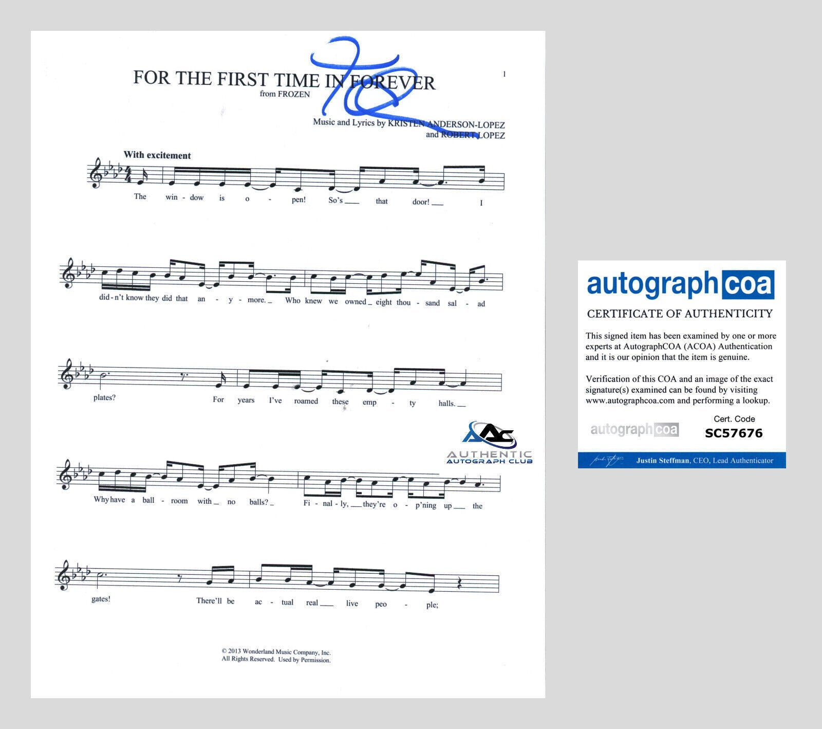 CERTIFIED BY AUTOGRAPHCOA (ACOA) AUTHENTICATION # SC57676