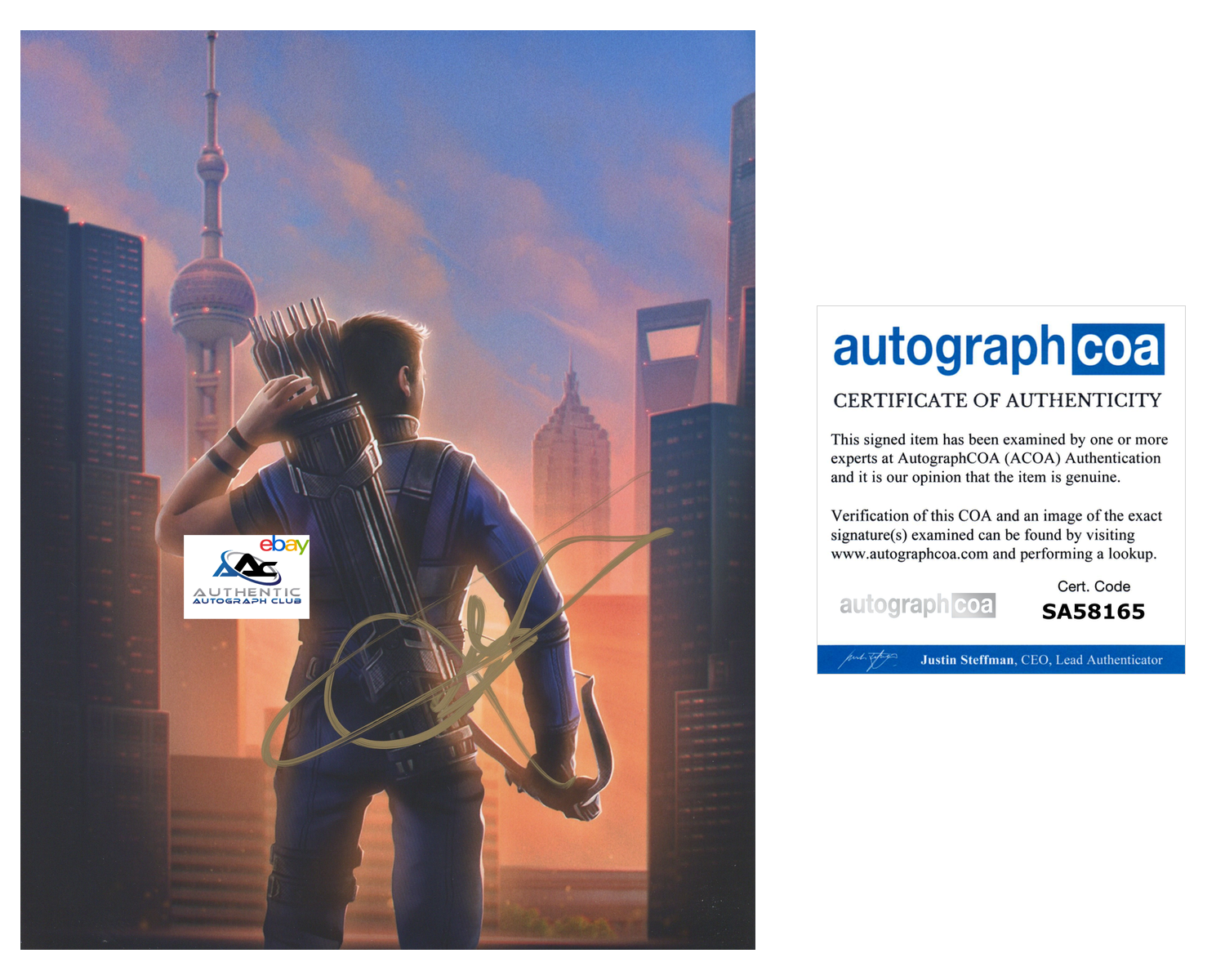 JEREMY RENNER AUTOGRAPH SIGNED 8x10 PHOTO MARVEL AVENGERS HAWKEYE ACOA COA