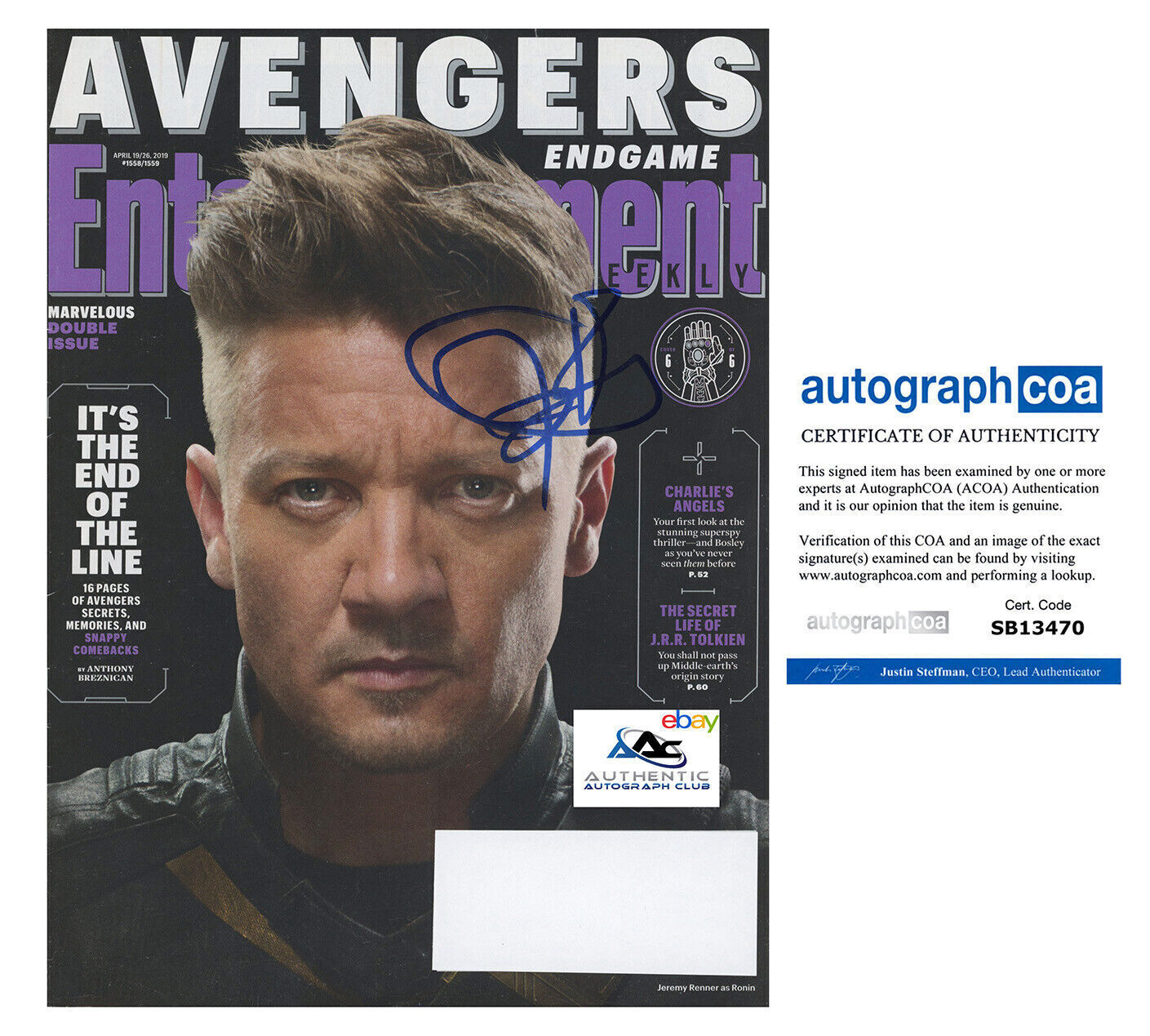 JEREMY RENNER AUTOGRAPH SIGNED ENTERTAINMENT WEEKLY MAG HAWKEYE MARVEL ACOA
