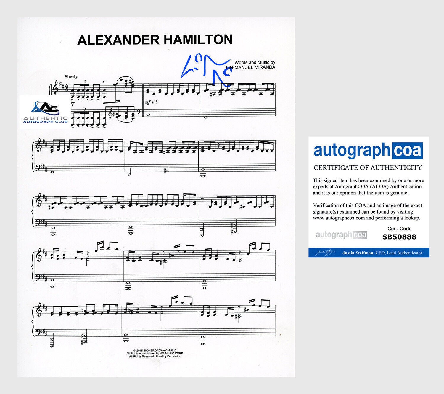 LIN MANUEL MIRANDA AUTOGRAPH SIGNED ALEXANDER HAMILTON SHEET MUSIC ACOA