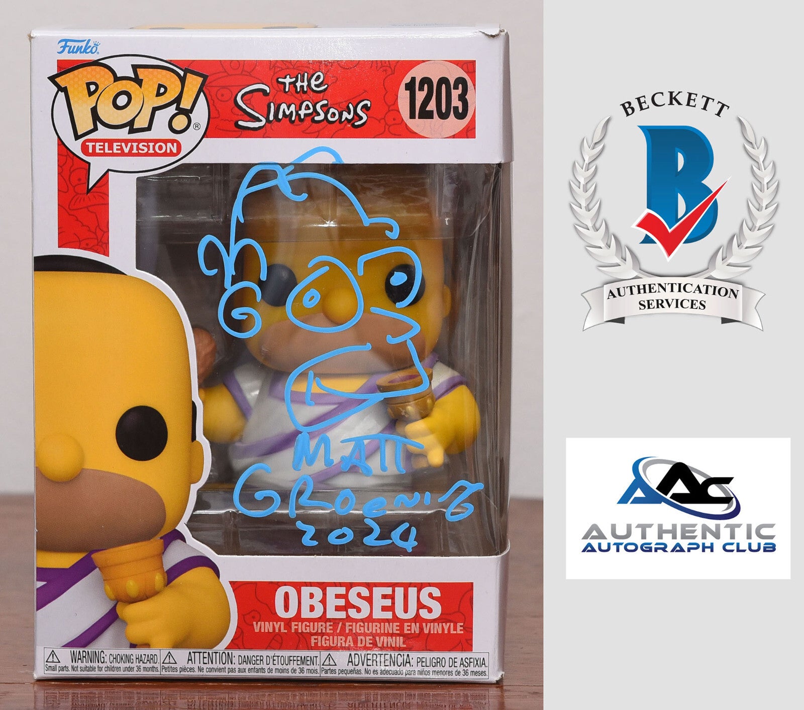 MATT GROENING AUTOGRAPH SIGNED HOMER SIMPSON OBESEUS FUNKO POP BECKETT BAS