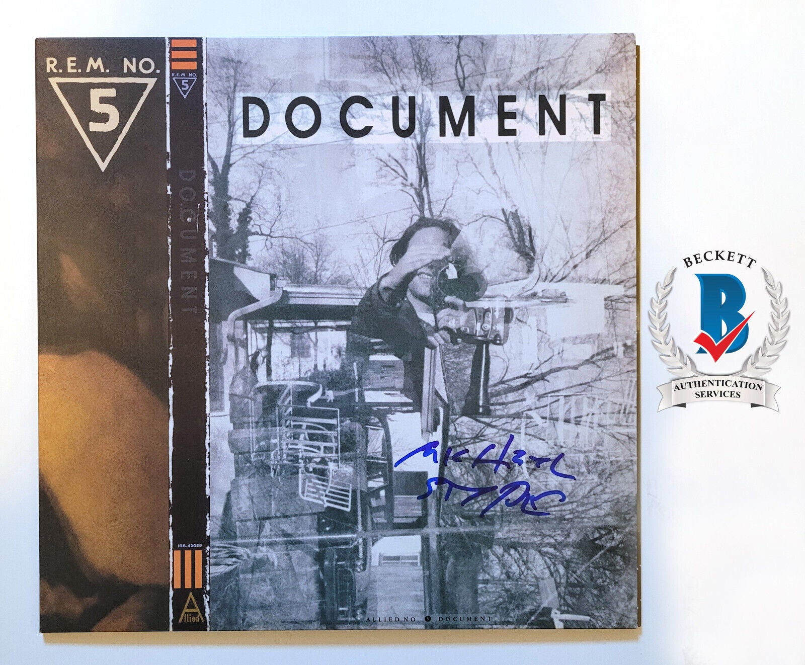 MICHAEAL STIPE AUTOGRAPH SIGNED DOCUMENT VINYL ALBUM RECORD BECKETT BAS COA