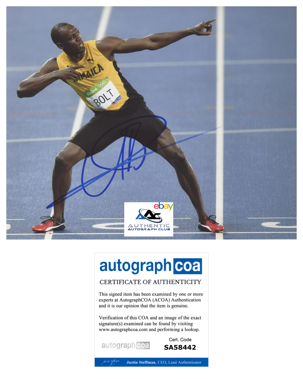 USAIN BOLT AUTOGRAPH SIGNED 8X10 PHOTO OLYMPIC GOLD MEDALIST ACOA