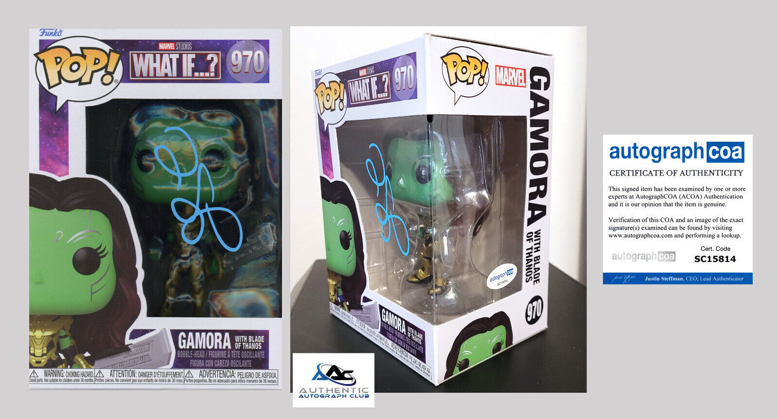 ZOE SALDANA AUTOGRAPH SIGNED GAMORA BLADE OF THANOS FUNKO POP 970 ACOA